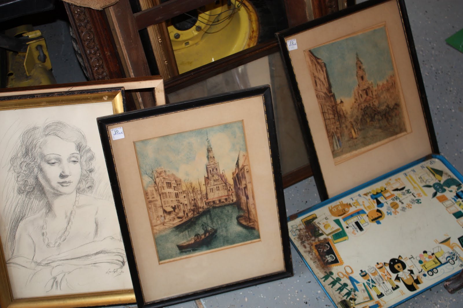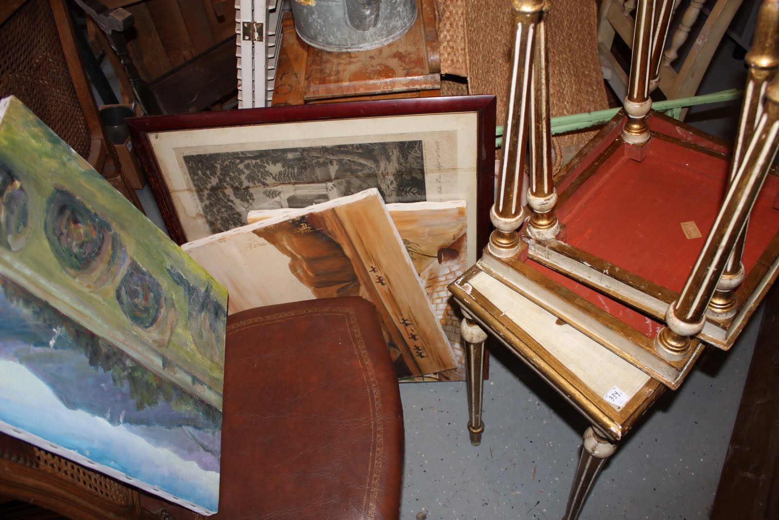 Some more assorted artwork and a set of Italian nesting tables. They need to be painted which is no big deal but they are also wobbly. Hopefully I will be able to fix that.