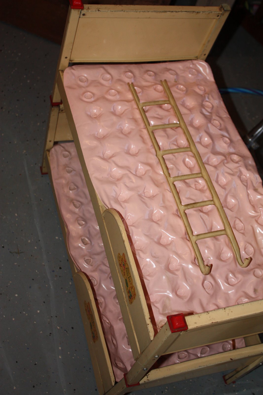 Again, falling into the "What I am going to do with this?" category, I came home with vintage tin children's items including a doll bunk bed, a stove and a bassinet type of thing.