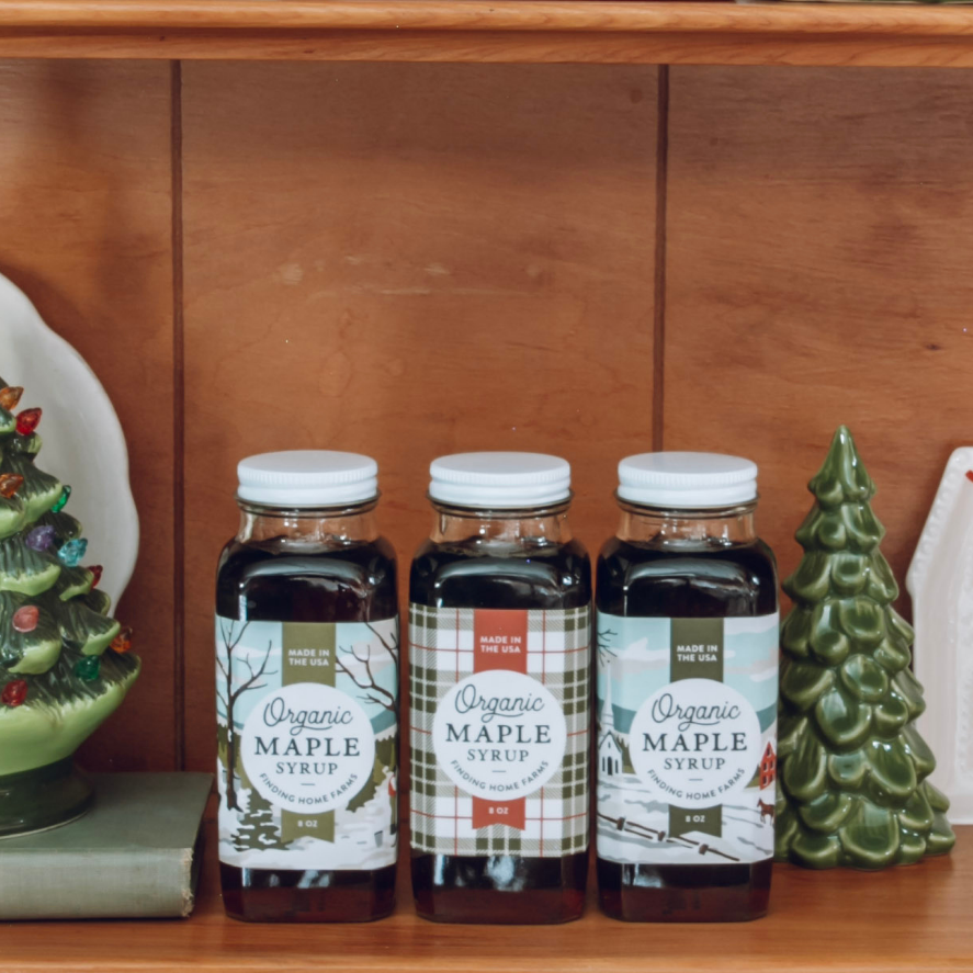 Part of our holiday collection, this 8 oz plaid style maple syrup features our traditional organic maple syrup dressed and ready for the holidays. Perfect to adorn your table during meals or for gifting.