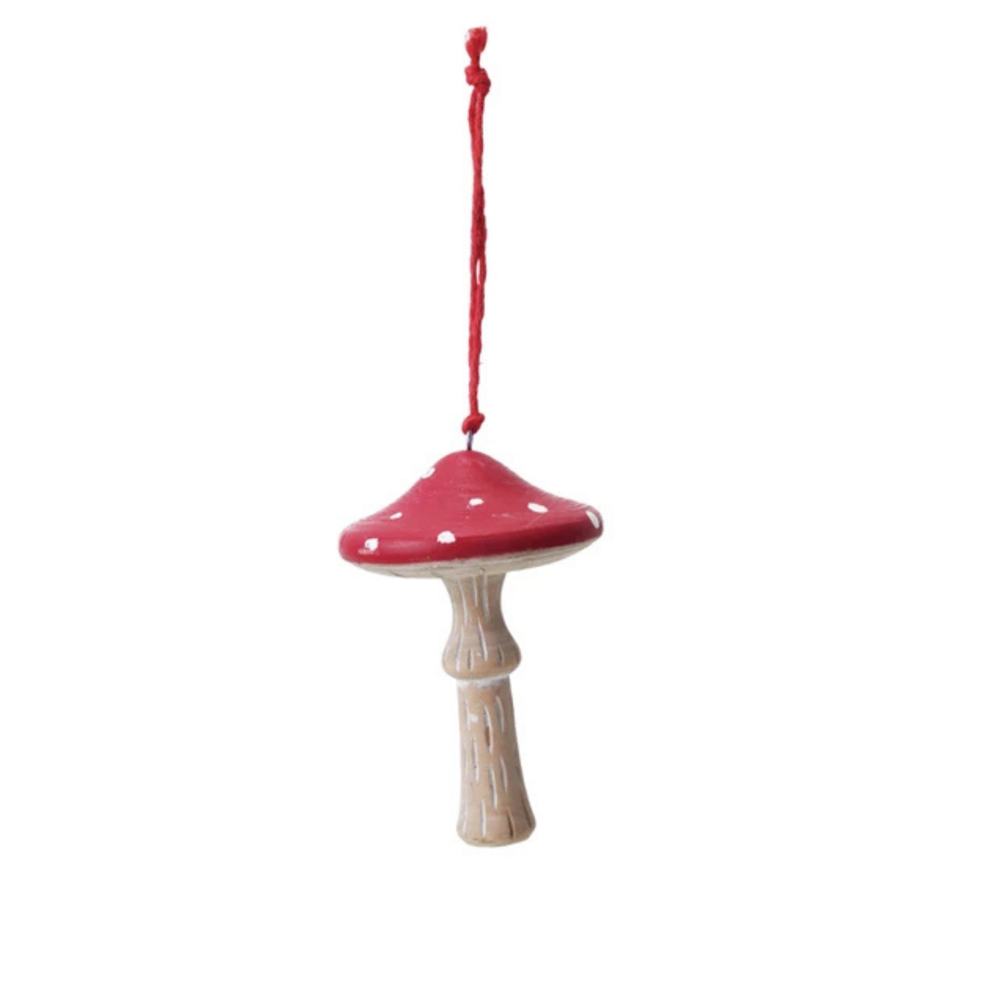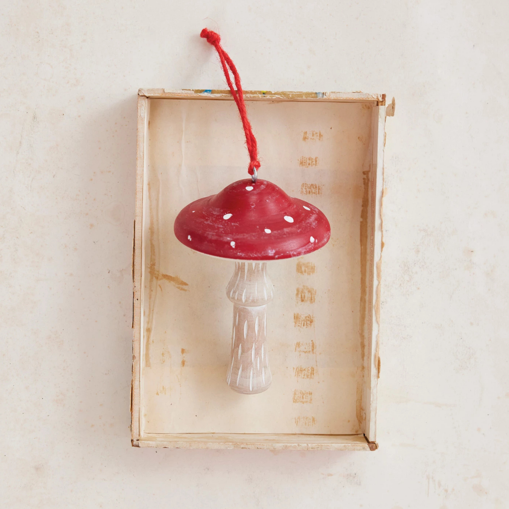 Add a touch of storybook charm to your holiday tree with our Woodland Mushroom Ornament. Crafted from natural wood and finished in a soft whitewash with cheerful red-and-white accents, each ornament brings a hint of whimsy and woodland magic to your décor. 6" tall by 4.5" wide.