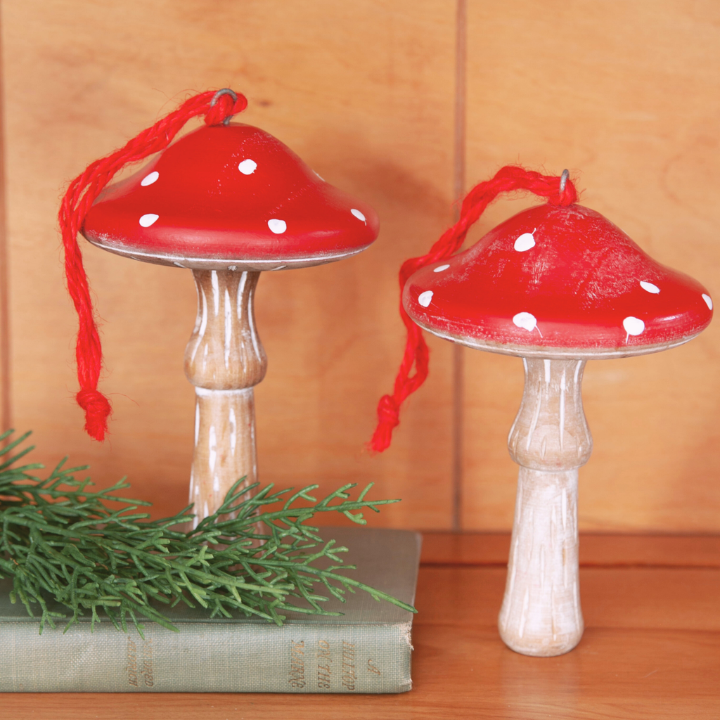 Whether tucked into a wreath, hung from a garland, or styled on a tree, these little mushrooms capture the spirit of a cozy holiday forest — simple, natural, and joyfully nostalgic.