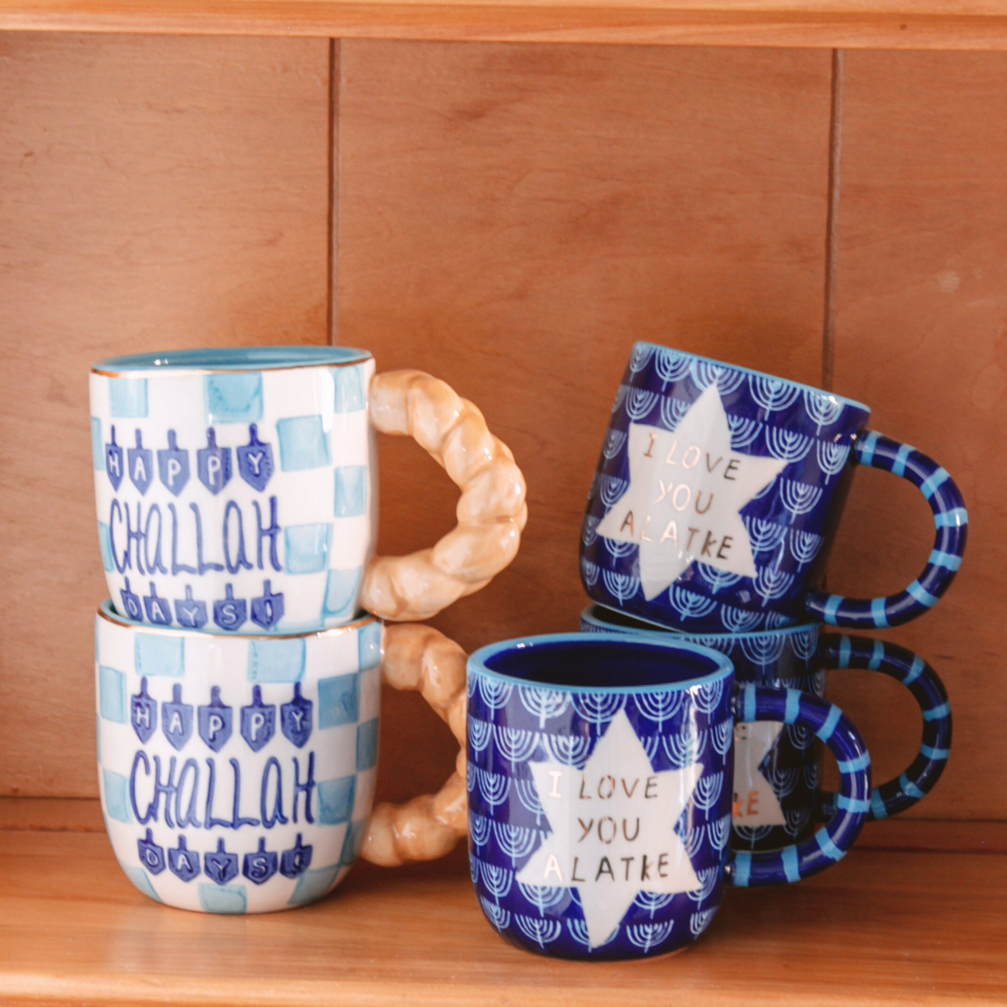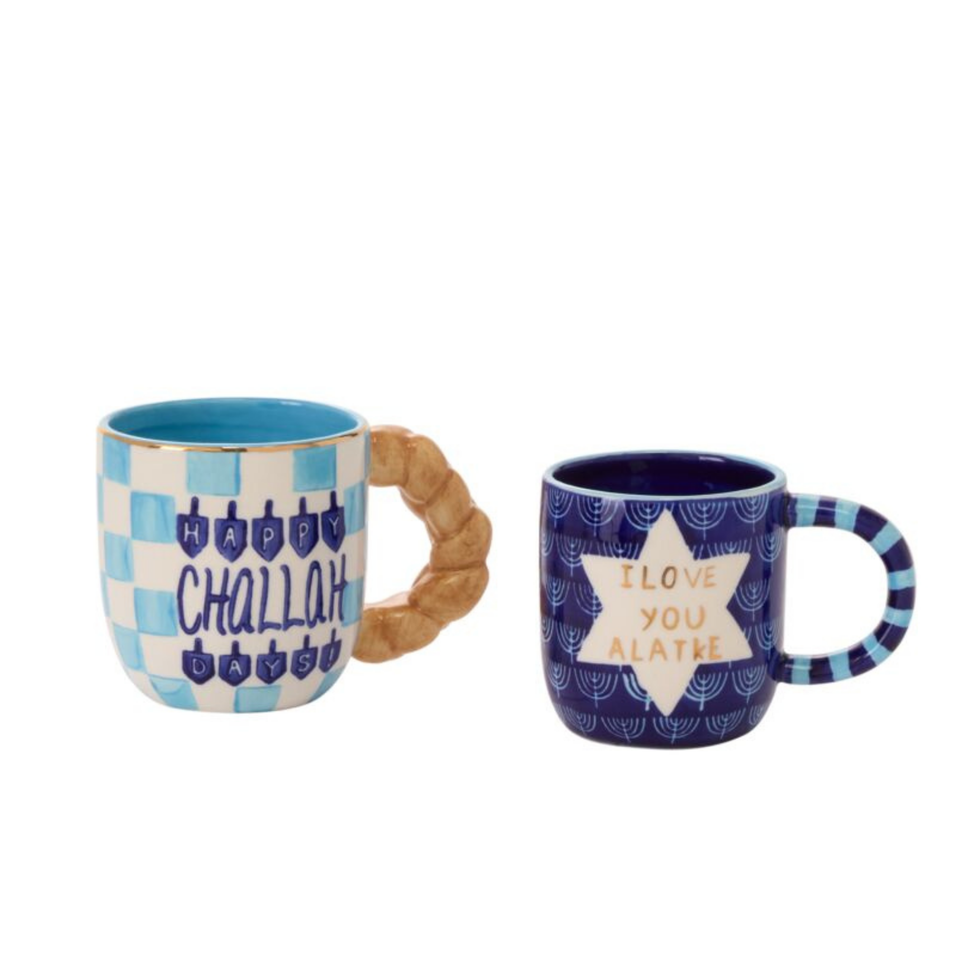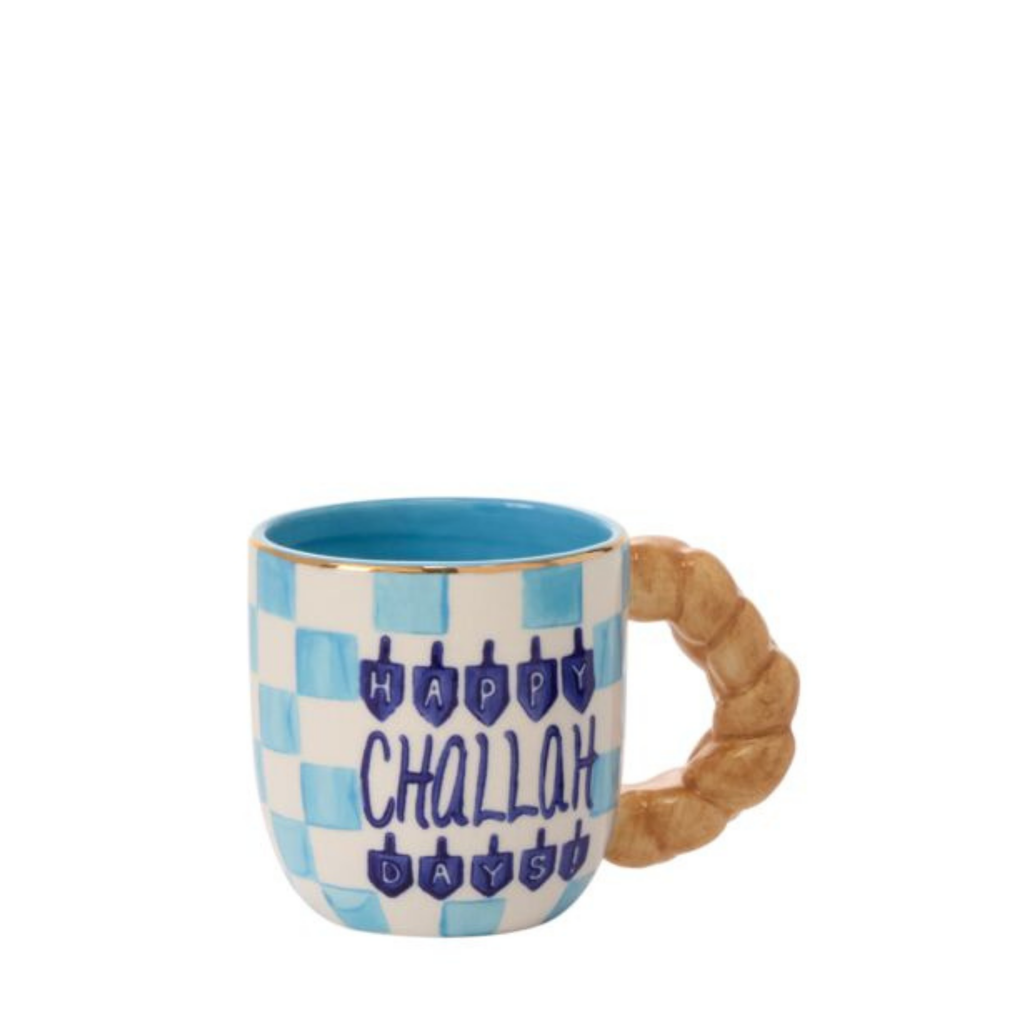 Celebrate the season with a wink and a warm drink in our “Happy Challah Days” Mug. With its deep blue accents and playful pun, the challah bread shaped handle brings humor and heart to your Hanukkah traditions.