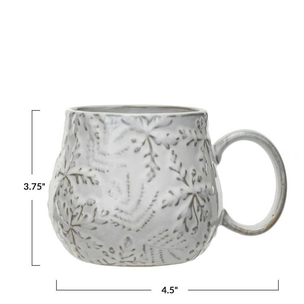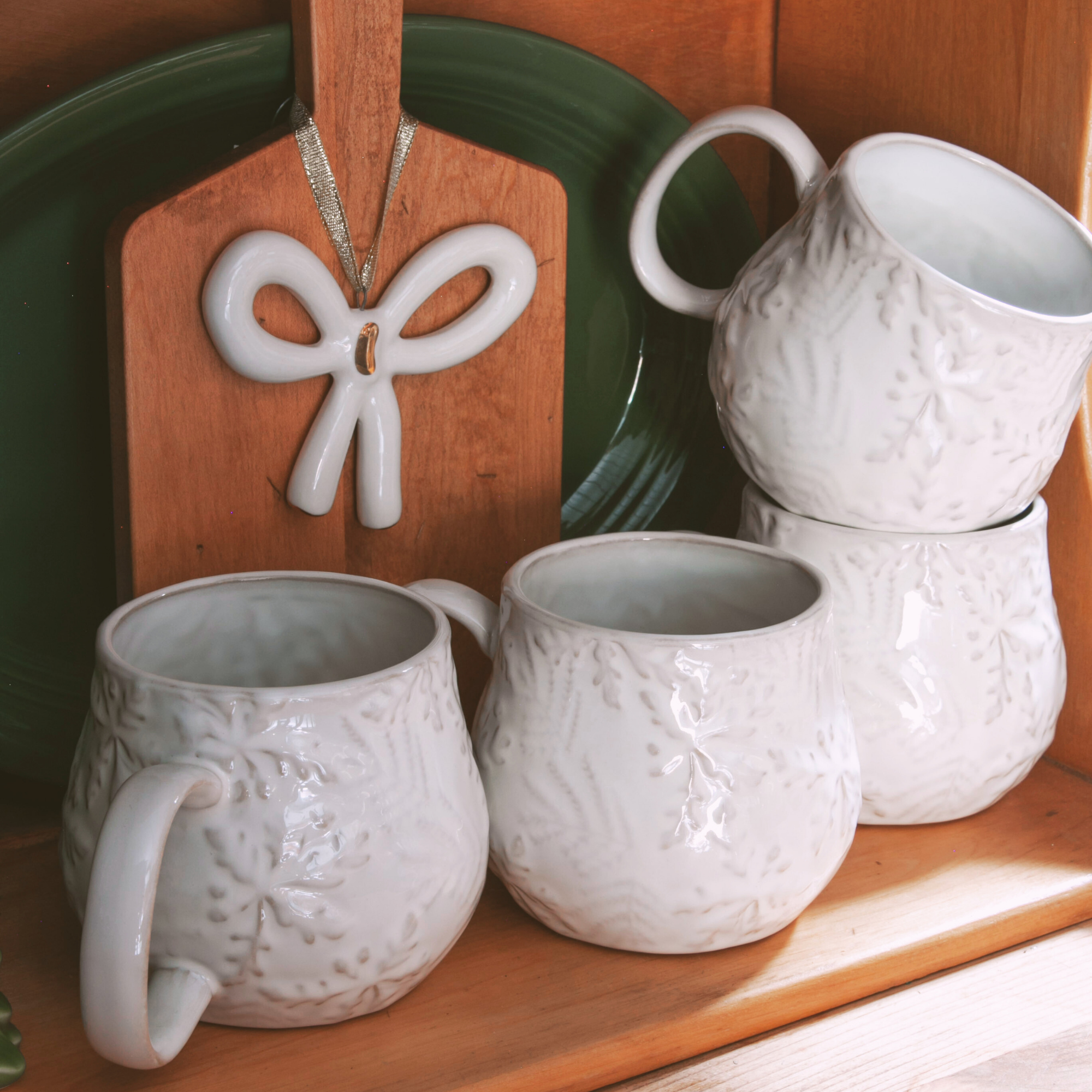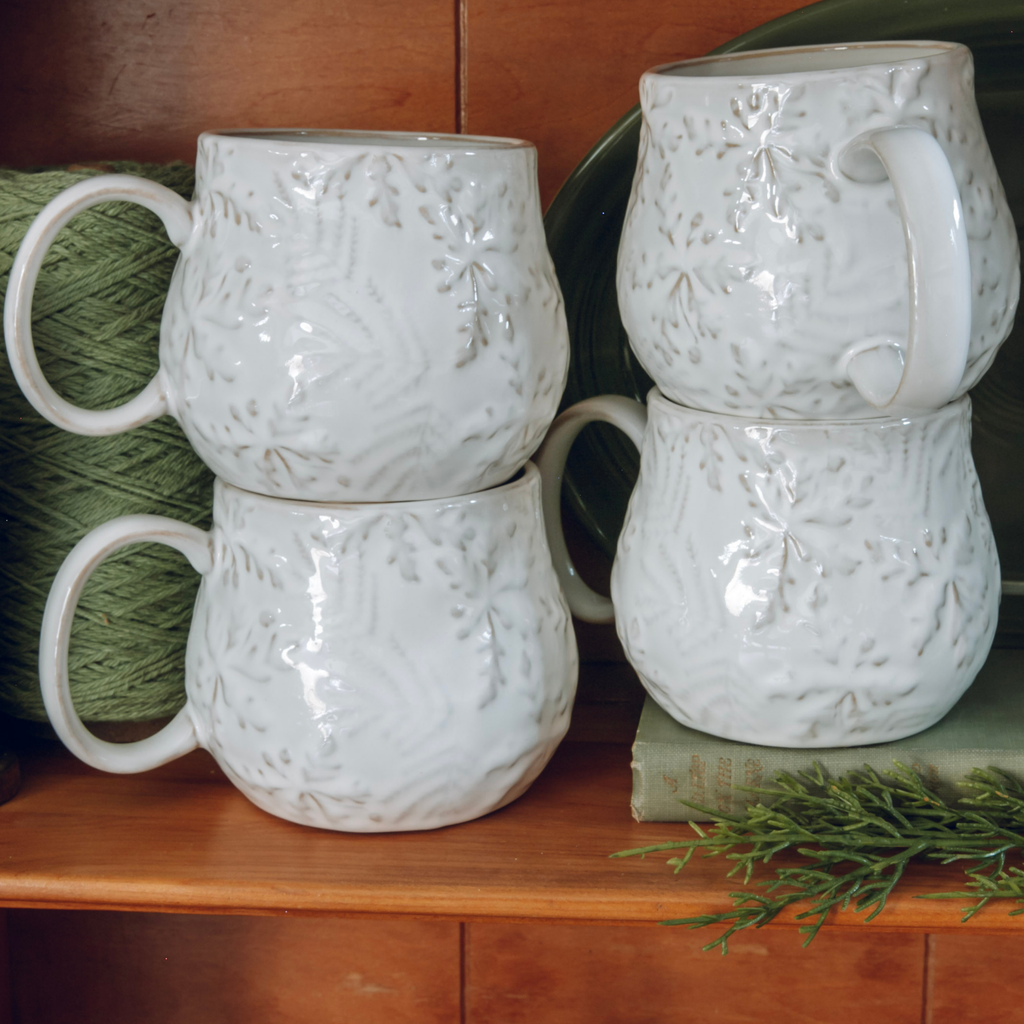 Wrap your hands around the comfort of winter mornings with our Snowfall Stoneware Mug. Crafted with an embossed snowflake design and finished with a soft reactive glaze, each 16 oz. mug is beautifully unique — no two are exactly alike.