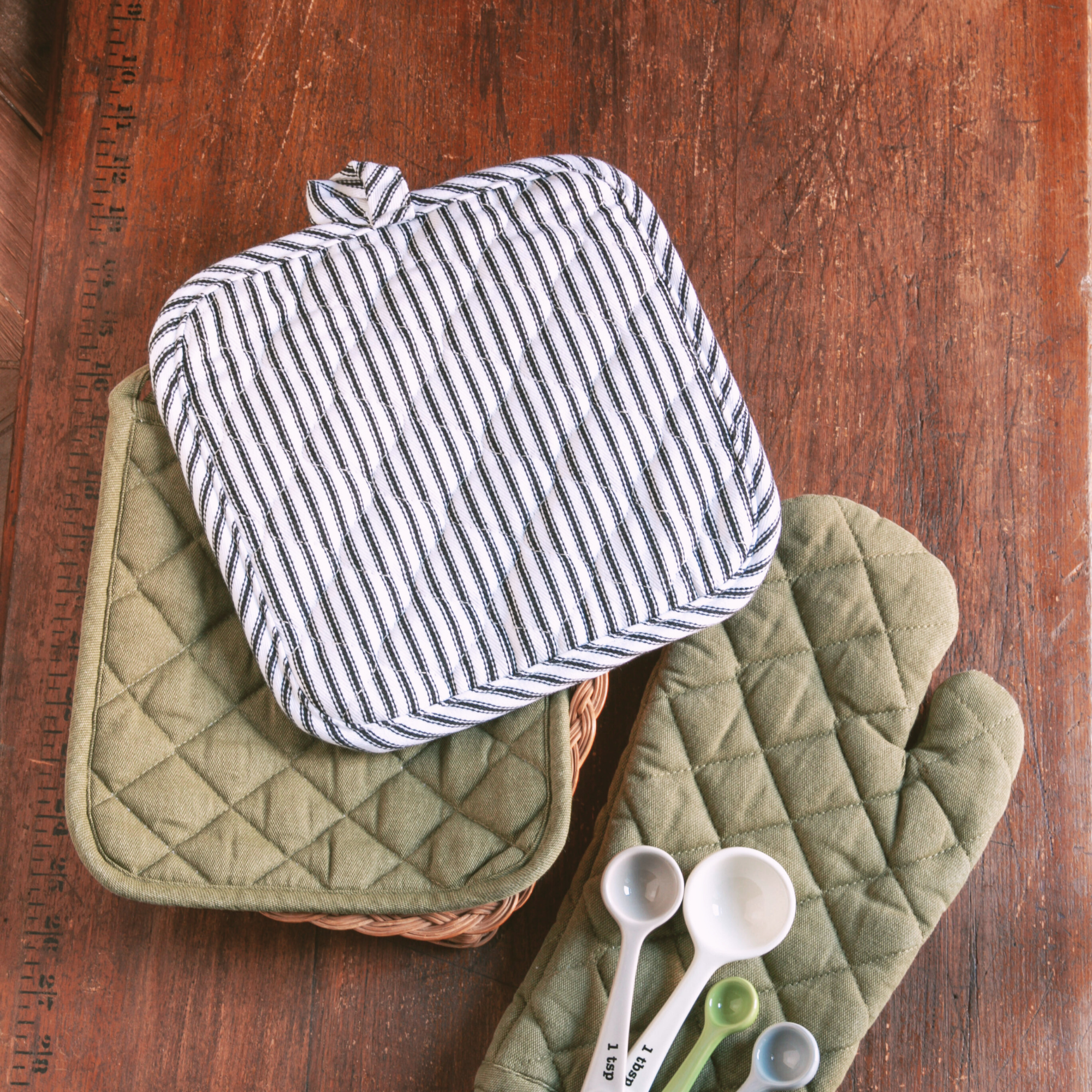 Bring timeless style and everyday function to your kitchen with our Hearth Stripe Potholder. Crafted from 100% cotton, these pot holders combine comfort and durability with a classic striped design that fits beautifully in any home.